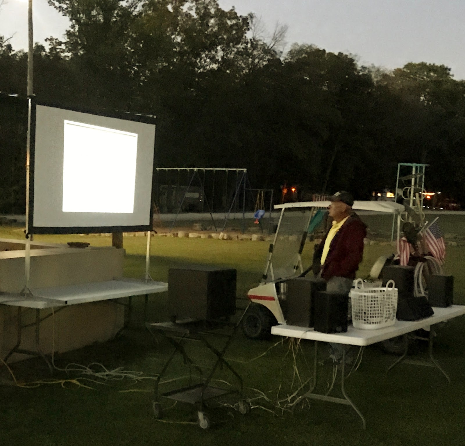 I finally have a minute to myself! Only a quick minute. The park is nearly full with Otoberfest enthusiasts and it is Saturday ....... time for Saturday Night at the Movies. With a twist this week ...... dinner and a movie!